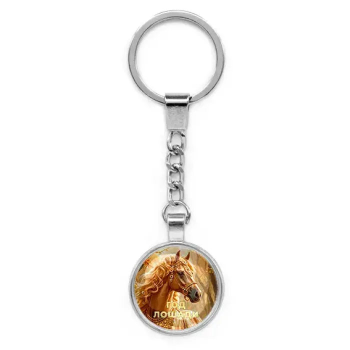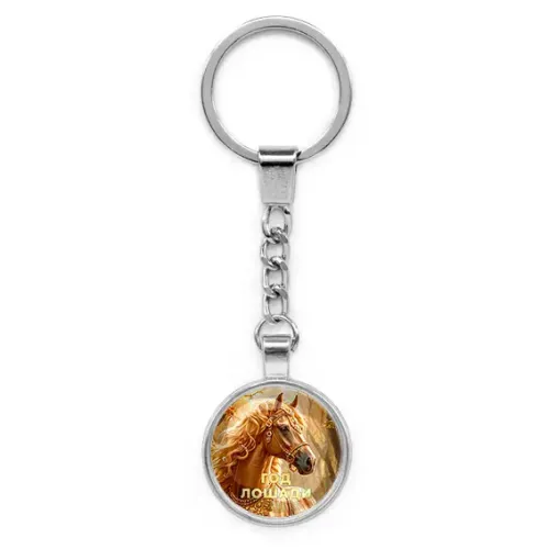 Круглый брелок, цвет серебро, с цепочкой, Год Лошади C0902022