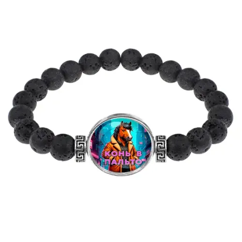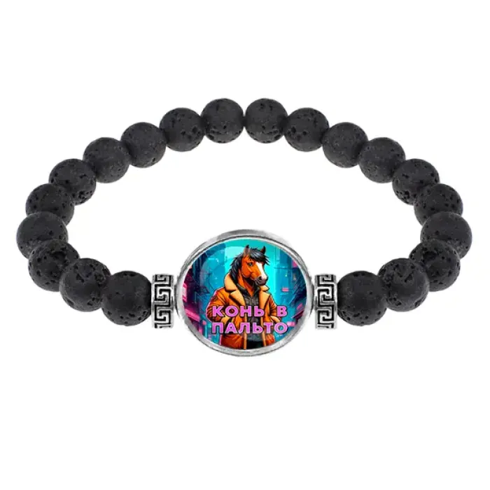 Стрейч-браслет из натуральной лавы диаметром 8 мм с изображением под выпуклой стеклянной линзой. Этот уникальный аксессуар, имеющий внутренний диаметр около 5,5 см, выполнен из качественных материалов: лавы, бижутерного сплава с покрытием под серебро и стекла. Лава традиционно ценится за свою способность впитывать эфирные масла, что делает этот браслет идеальным для использования в аромабижутерии. Нанесение нескольких капель эфирного масла на бусины позволяет создавать собственные ароматические композиции и наслаждаться их эффектом в течение дня.