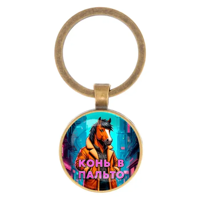 Круглый брелок, цвет бронза, Конь в пальто C0903017