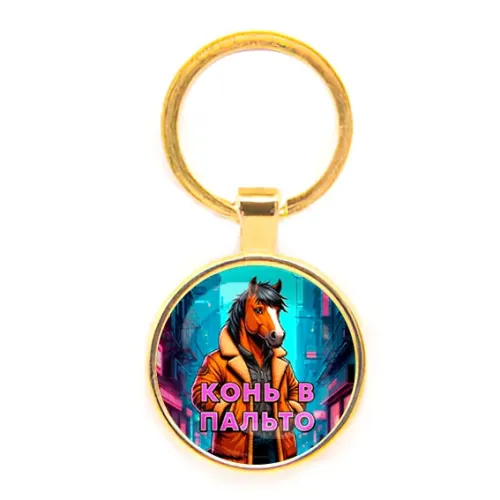 Круглый брелок, цвет золото, Конь в пальто C0903019