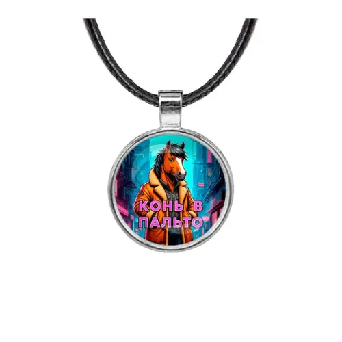 Кулон, цвет серебро, со шнурком, Конь в пальто C0903027
