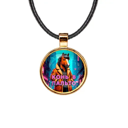 Кулон, цвет золото, со шнурком, Конь в пальто C0903033