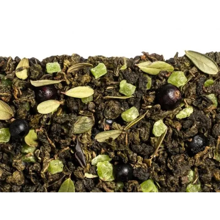 Китайский улун с добавлением ягод чёрной смородины, кусочков ананаса и листьев брусники. Обладает ярким ягодным характером, где аромат свежей смородины гармонично сочетается со сладкими нотами экзотического ананаса, усиленными натуральными ароматизаторами.