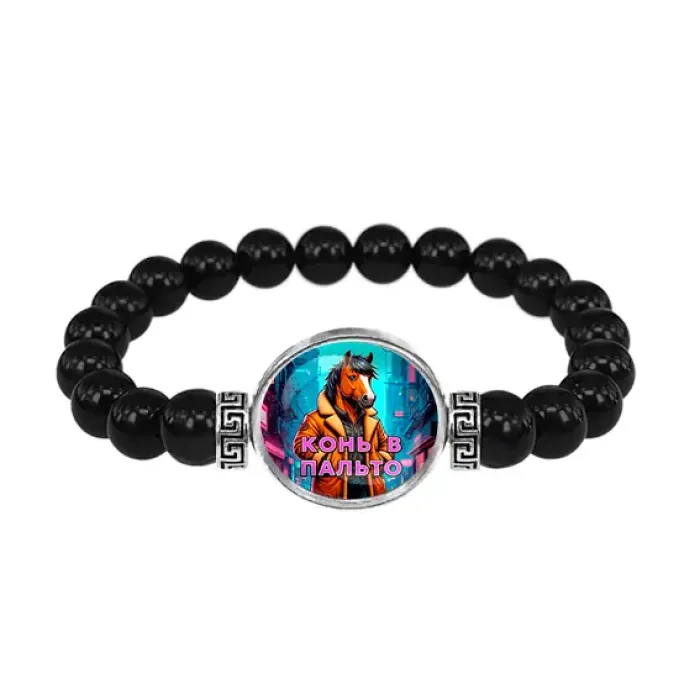 Браслет из черного агата, Конь в пальто C0903056
