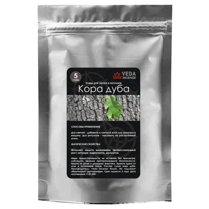 Кора дуба — это уникальный ингредиент, обладающий магическими свойствами, которые традиционно используются для увеличения прибыли и достатка, а также избавления от бед, несчастий и вредных привычек. Упаковка в виде дой-пак с застёжкой обеспечивает удобство хранения и использования. Фасовка составляет 5 грамм, что идеально подходит для проведения различных ритуалов и создания свечей. На упаковке указаны способы применения, что делает процесс ещё более простым и доступным.