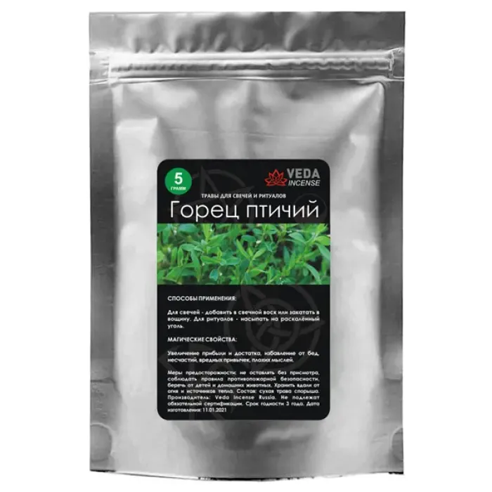 Горец птичий, также известный как Спорыш, представляет собой траву с уникальными магическими свойствами. Она традиционно используется для защиты от зла, медитации, привлечения любви и улучшения личной жизни. Эта трава способствует благосостоянию, спокойствию и успеху в делах.