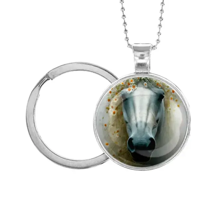 Кулон-брелок, цвет серебро, с цепочкой и кольцом, Лошадка в тумане C0904054