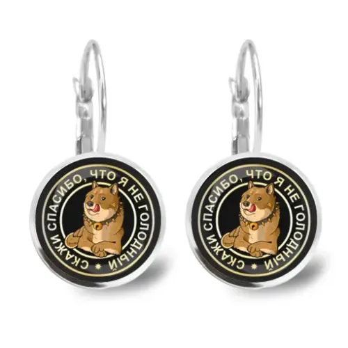 Серьги-сувенир из бижутерного сплава с изображениями под выпуклыми стеклянными линзами.