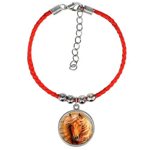 Браслет из шнура с декоративным элементом в виде лошади под защитным стеклом.