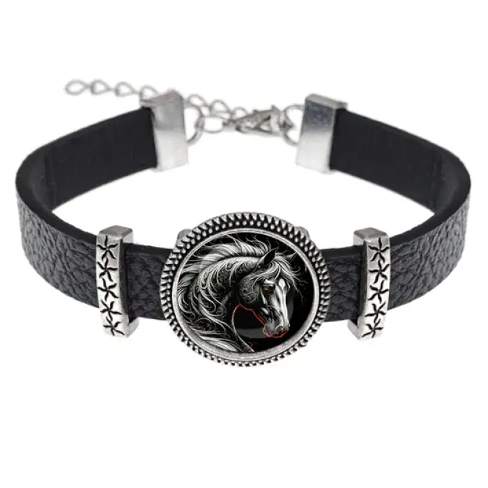 Кожаный браслет с изображением лошади — это стильный аксессуар, который подчеркнет индивидуальность и станет отличным подарком. Изделие выполнено из искусственной кожи и украшено выпуклой стеклянной линзой диаметром 20 мм, что придает ему особую привлекательность.