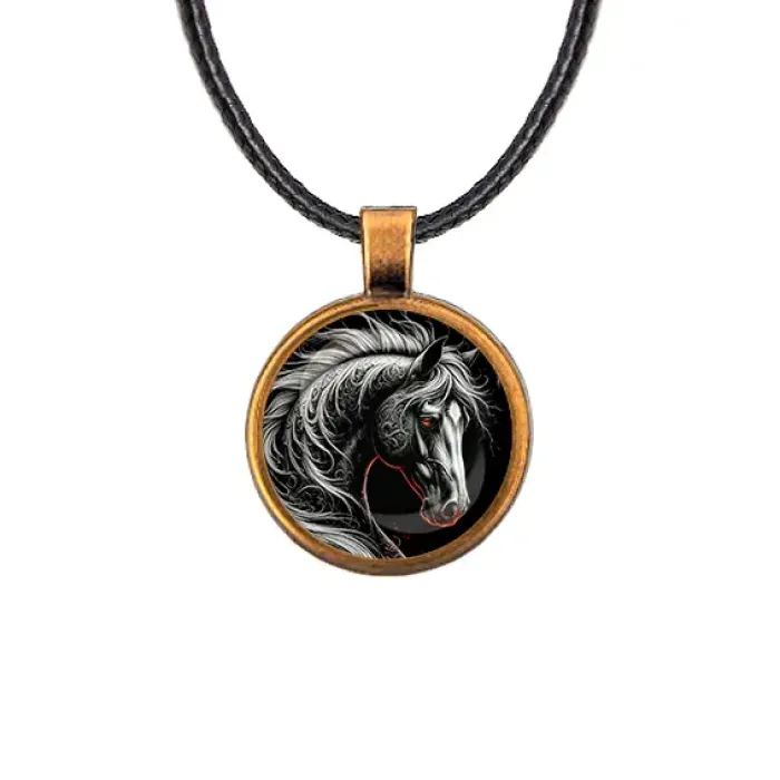Кулон в виде лошади из бижутерного сплава со шнурком.