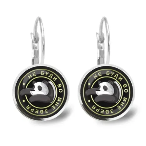 Серьги с изображениями под выпуклыми стеклянными линзами, тип замка — левербэк.
