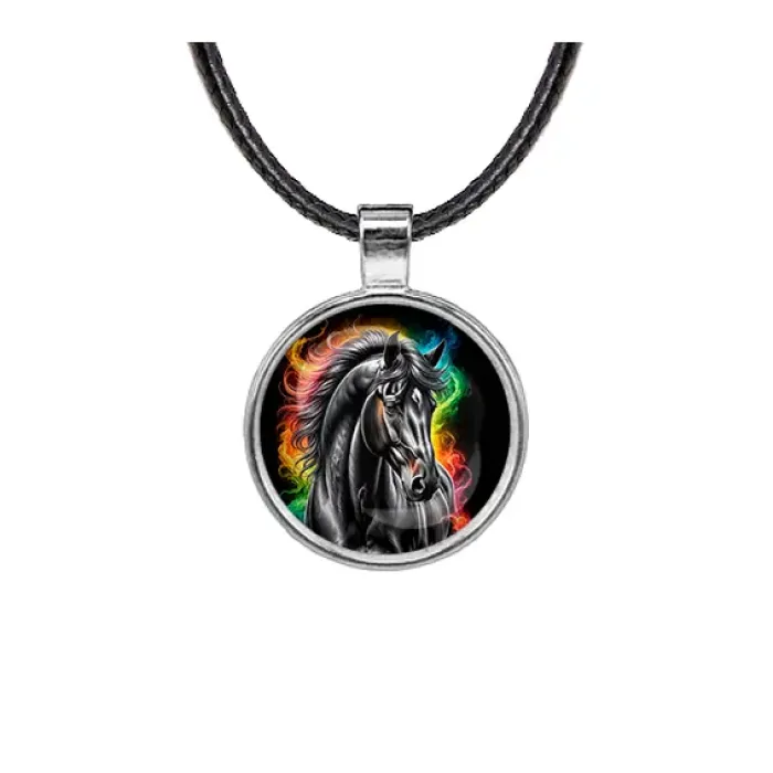 Кулон, цвет серебро, со шнурком, Черный конь C0907027