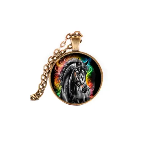 Кулон, цвет бронза, с цепочкой, Черный конь C0907028