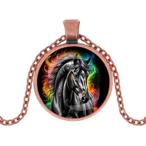 Кулон, цвет медь, с цепочкой, Черный конь C0907030