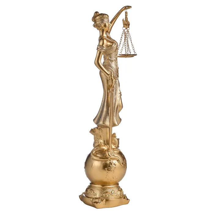 Фигурка «Фемида» из серии МАХАРАДЖИ от Lefard — это стильный предмет интерьера, символизирующий правосудие и равенство. Изделие выполнено в виде богини с закрытыми глазами, мечом и весами, что подчеркивает стремление к справедливости и миру.