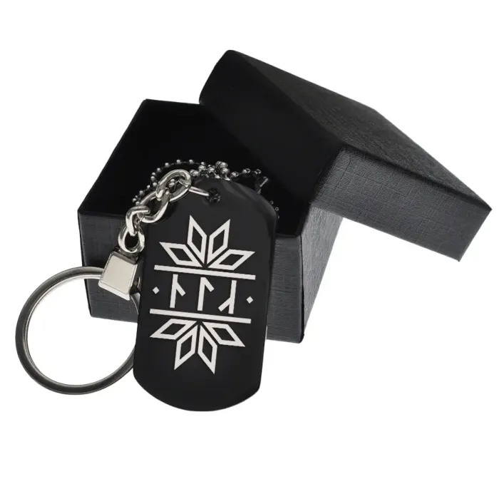 Черный жетон с рунической формулой Семейное счастье — это не только стильный аксессуар, но и символ крепких отношений. Изготовленный из высококачественной полированной нержавеющей стали с чернением, он станет отличным подарком для тех, кто ценит гармонию в семье.
