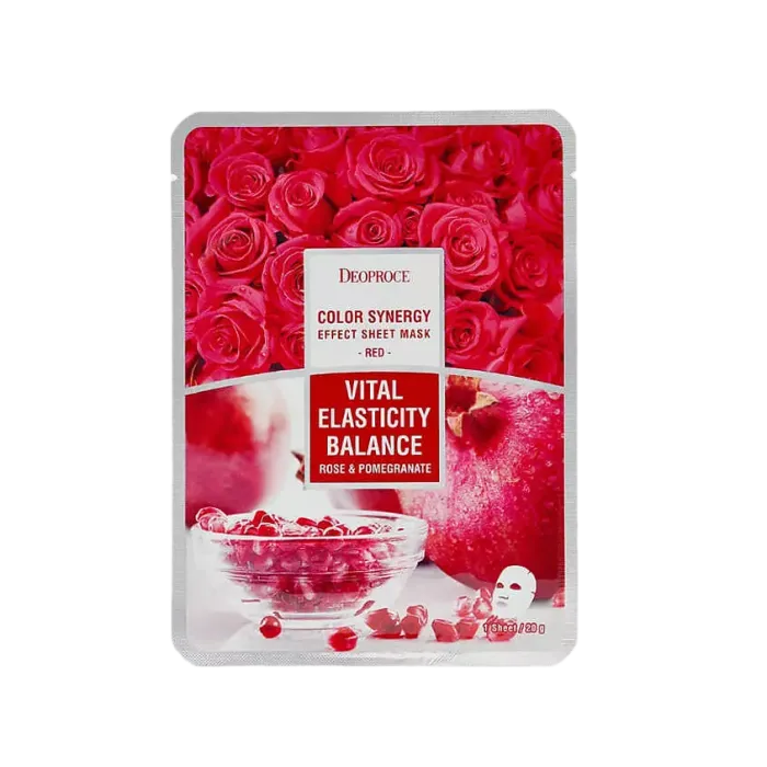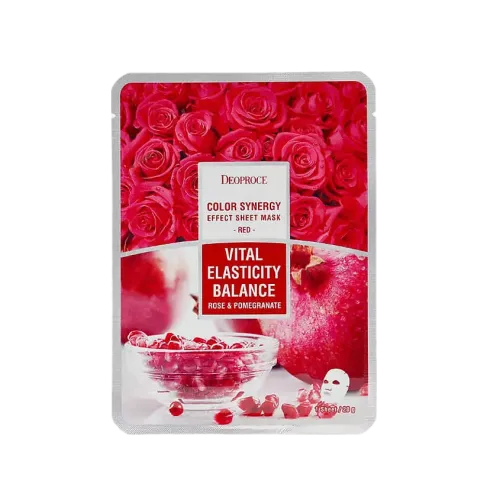 Маска тканевая на основе гиалуроновой кислоты с экстрактом граната и лепестков роз DEOPROCE COLOR SYNERGY EFFECT SHEET MASK RED 20 гр