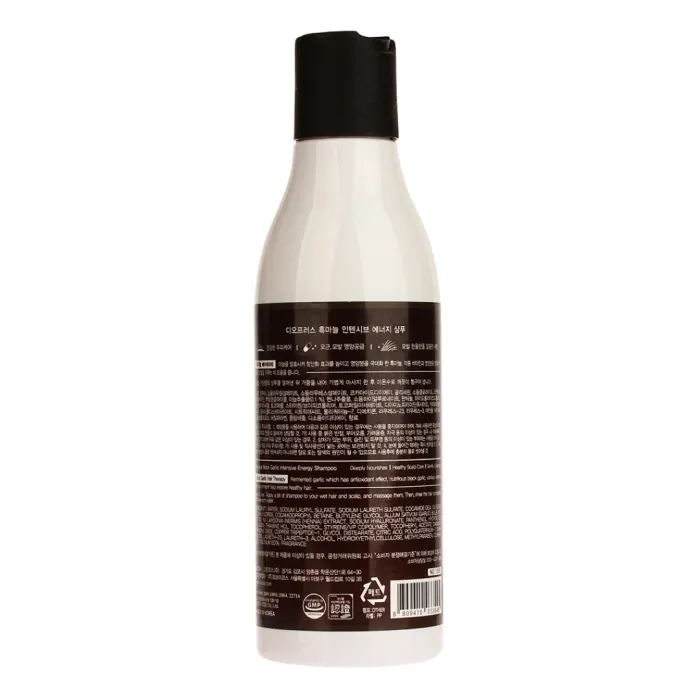 Интенсивный шампунь BLACK GARLIC INTENSIVE ENERGY SHAMPOO с экстрактом черного чеснока разработан для борьбы с выпадением волос. Активные ингредиенты способствуют росту и восстановлению кожи головы, укрепляют волосы по всей длине, предотвращают их выпадение и защищают от негативных воздействий окружающей среды. Шампунь придает объем и блеск волосам, подходит для всех типов волос, особенно рекомендован для сухих и ломких.