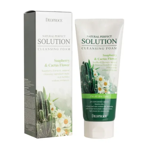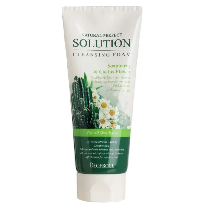 Пенка для умывания DEOPROCE NATURAL PERFECT SOLUTION CLEANSING FOAM SOAP с экстрактом кактуса — это мягкое и эффективное средство для ежедневного очищения кожи. Формула пенки обогащена натуральными экстрактами, такими как ромашка, кактус и алоэ, которые известны своими успокаивающими и противовоспалительными свойствами. Это делает продукт идеальным выбором для чувствительной кожи.