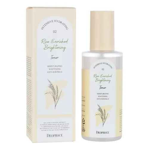 Тонер осветляющий для лица DEOPROCE RICE ENRICHED BRIGHTENING TONER предназначен для ухода за тусклой и уставшей кожей, склонной к пигментации и постакне. Этот продукт помогает интенсивно очищать, увлажнять и освежать кожу, выравнивать её тон и улучшать цвет лица. Результатом использования является ровная, чистая и сияющая кожа.