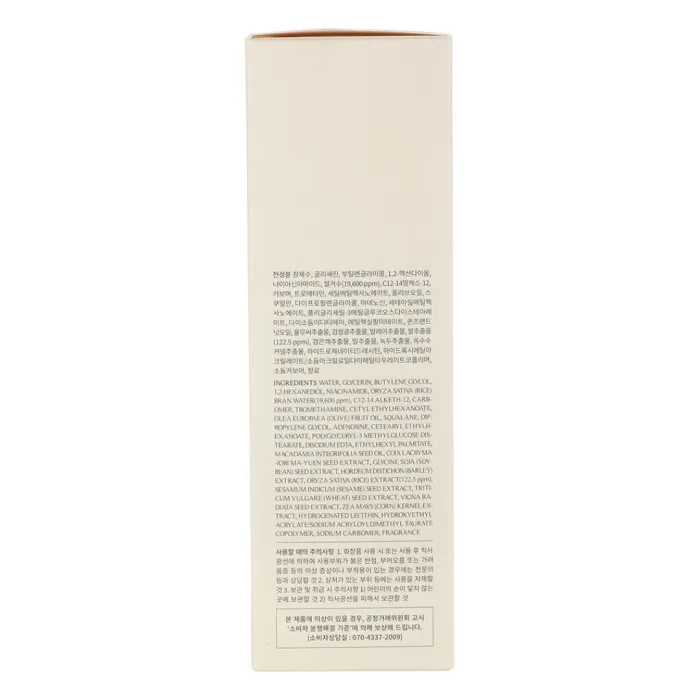 Состав: Вода, глицерин, бутиленгликоль, ниацинамид, вода из отрубей риса (Oryza Sativa), масло оливы (Olea Europaea) плодовое масло, сквалан, аденозин.
