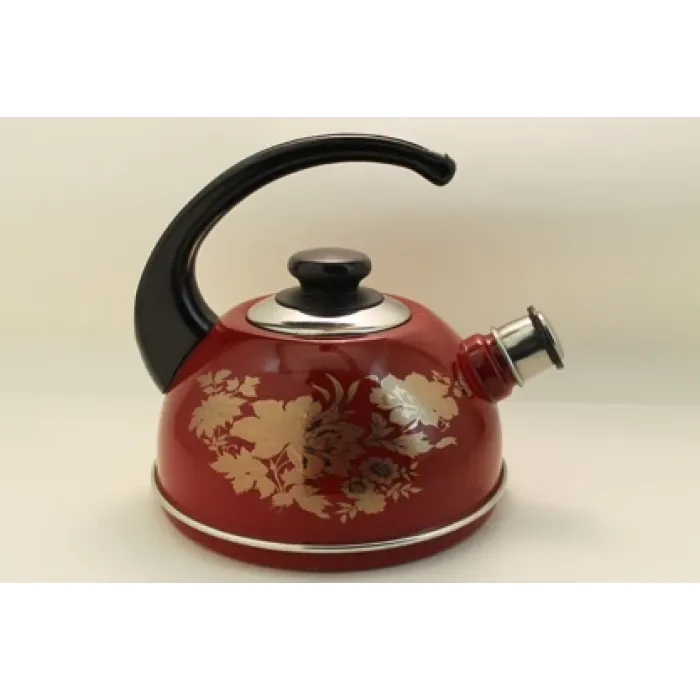 Корпус чайника изготовлен из эмали, которая обеспечивает устойчивость к коррозии. Крышка, ободок и свисток выполнены из нержавеющей стали для повышения надёжности конструкции. Консольная ручка позволяет безопасно поднимать чайник с горячей водой.