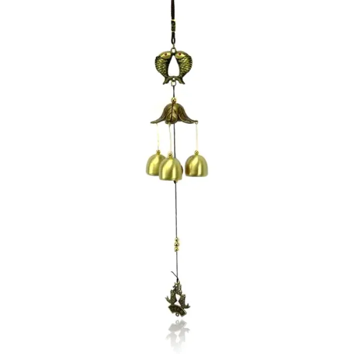Подвеска «Музыка ветра» с изображением двух карпов. Изготовлена из металла с покрытием под золото.