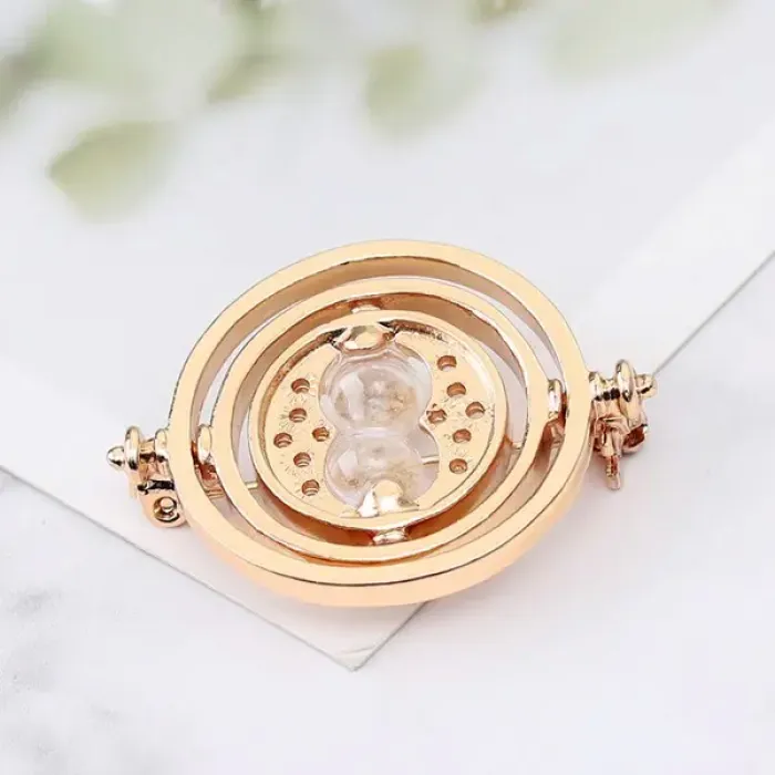 Брошь в форме песочных часов из бижутерного сплава со стеклянным элементом.