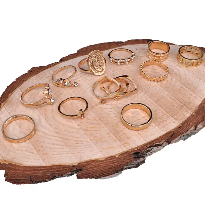 Набор из 13 колец для носки, бижутерный сплав с золотым покрытием и стразами.