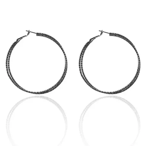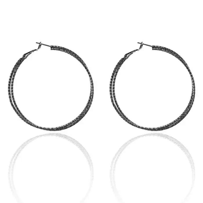 Серьги-кольца черного цвета из бижутерного сплава с замком типа булавка.