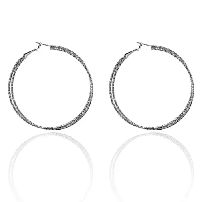 Серьги-кольца серебристого цвета из бижутерного сплава с замком типа булавка.