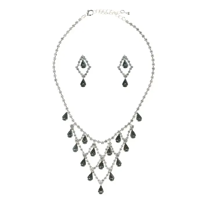 Комплект украшений (колье и серьги) из бижутерного сплава с кристаллами в форме капли.