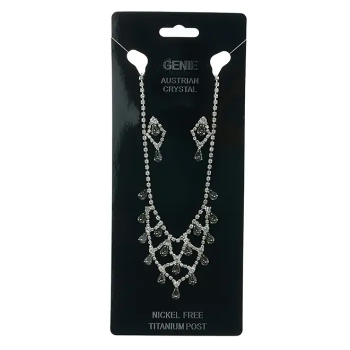 Комплект Капля с кристаллами (колье и серьги) UH030