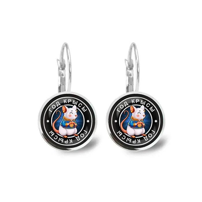 Серьги Восточный гороскоп - год Крысы представляют собой стильный аксессуар, который станет отличным дополнением к любому образу. Эти серьги диаметром 18 мм украшены изображениями под выпуклыми стеклянными линзами, что придаёт им особую выразительность и шарм.