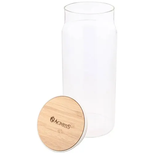 Емкость для пищевых продуктов Agness из коллекции Native предназначена для хранения сыпучих продуктов, таких как крупы и специи. Основными преимуществами являются материал — жаропрочное стекло, и наличие бамбуковой крышки, обеспечивающей плотное прилегание.