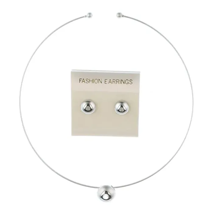 Комплект бижутерии включает чокер и серьги со стразами в минималистичном дизайне.