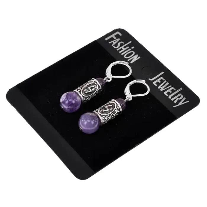 Серьги-амулеты с руной Соулу (Сила, энергия, здоровье, успех, победа), аметист SERS001