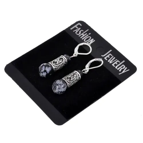 Серьги-амулеты с руной Дагаз (Перемены, возможности, путь к счастью), обсидиан SERS002