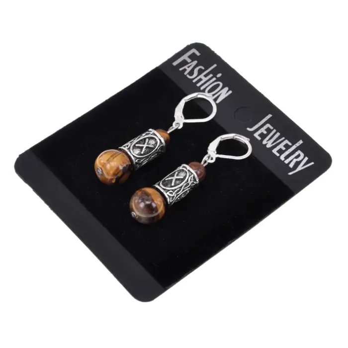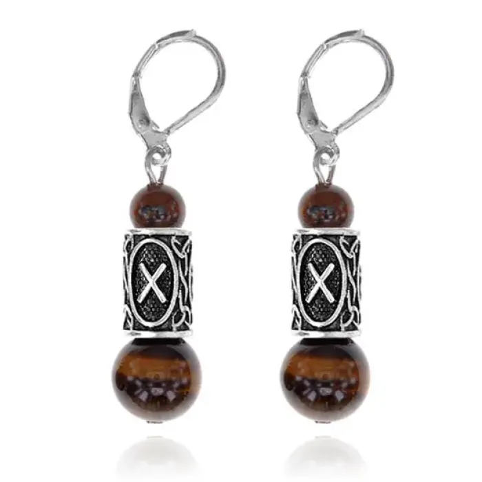Серьги-амулеты с руной Гебо (Бизнес, партнерство, семья, гармония), тигровый глаз SERS007