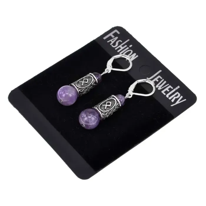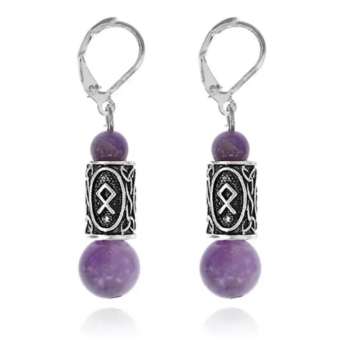 Серьги-амулеты с руной Одал (Защита, развитие, достижение цели), аметист SERS011