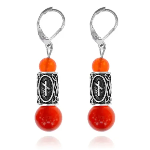 Серьги-амулеты с руной Наутиз (Упорство, уверенность, достижение цели), сердолик SERS014
