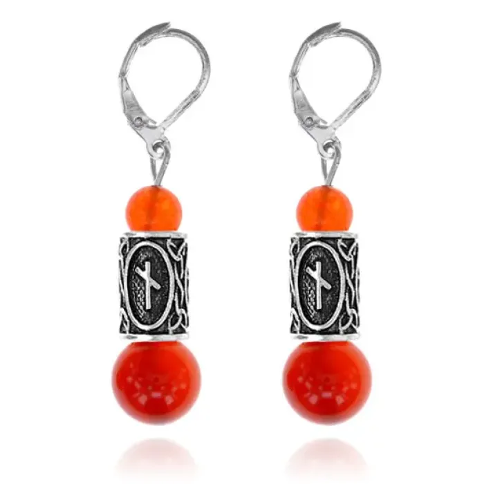 Серьги-амулеты с руной Наутиз из бижутерного сплава с натуральным сердоликом.