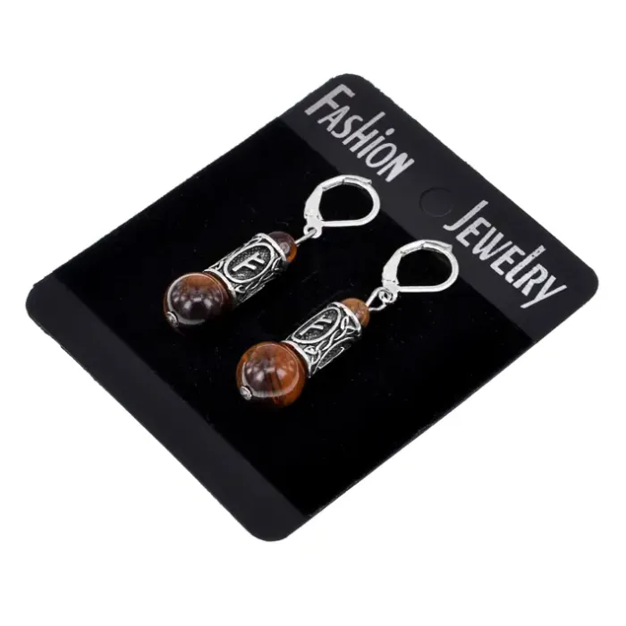 Серьги-амулеты с руной Феху (Карьера, бизнес, богатство, любовь), тигровый глаз SERS016