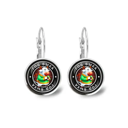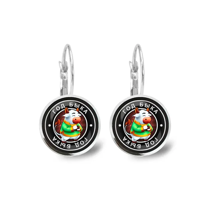 Серьги Восточный гороскоп - год Быка представляют собой уникальный аксессуар, который сочетает в себе символику восточного календаря и стильный дизайн. Эти серьги диаметром 18 мм украшены изображениями под выпуклыми стеклянными линзами, что придаёт им особую выразительность.