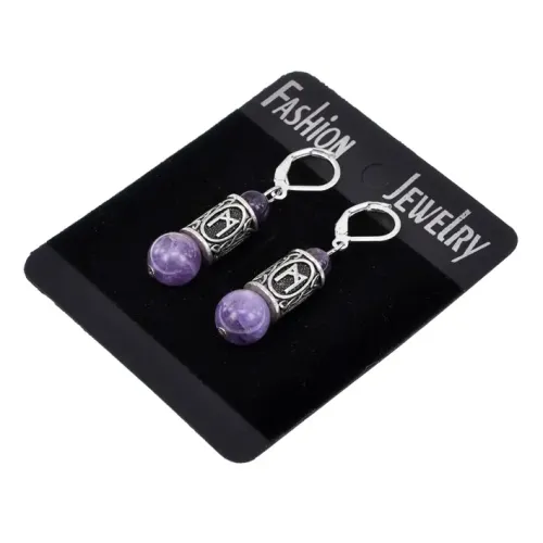 Серьги-амулеты с руной Манназ (Положение, связи, отношения), аметист SERS022