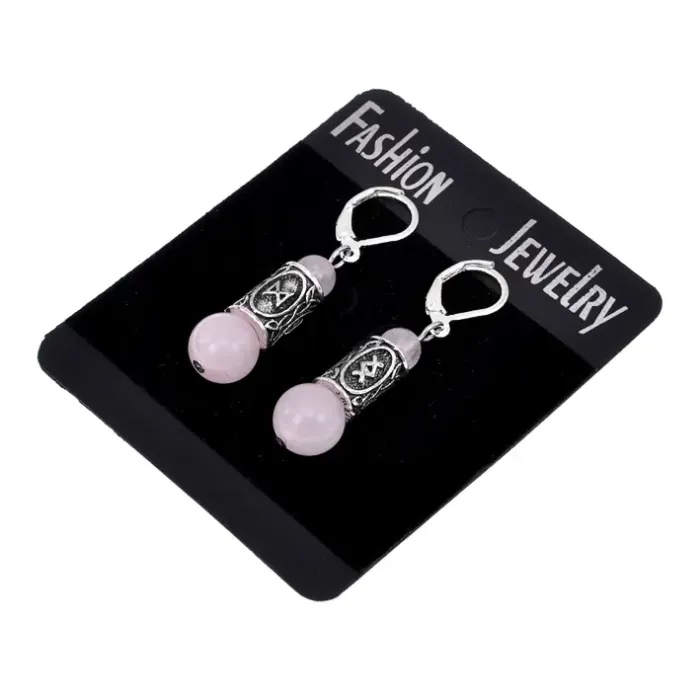 Серьги-амулеты с рунами Дагаз и Ингуз (Благополучие, здоровье, долголетие), розовый кварц SERS025