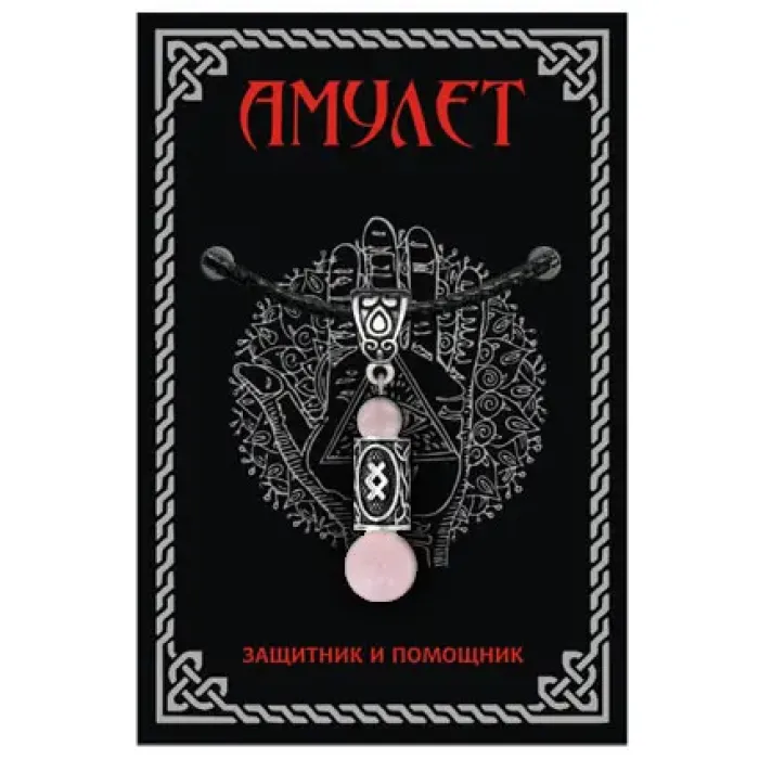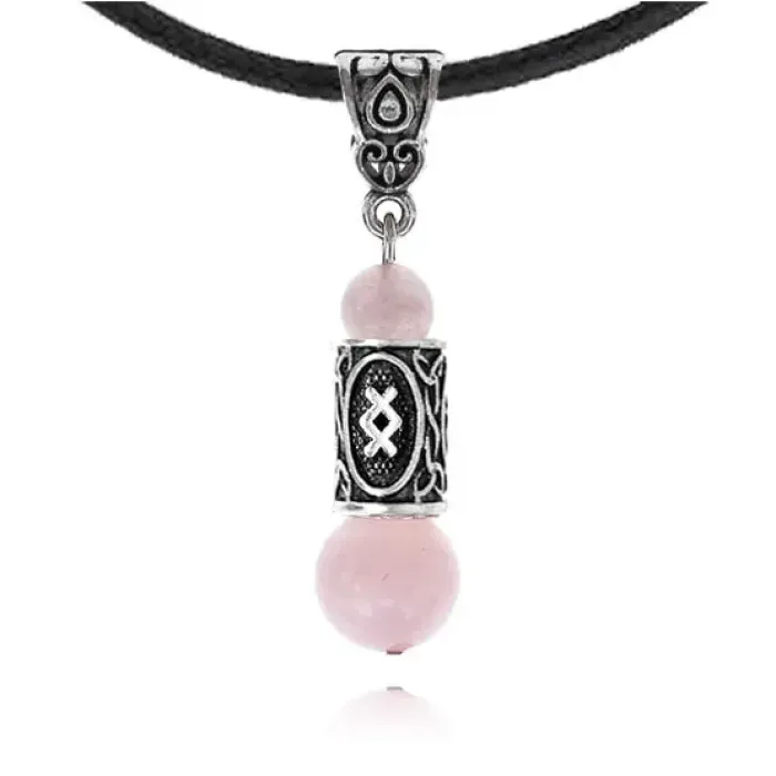 Кулон-амулет с руной Ингуз (Любовь, творчество, отношения), розовый кварц KULS004