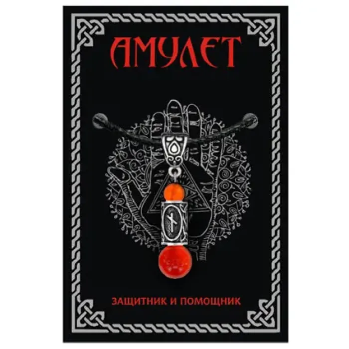 Кулон-амулет с руной Наутиз (Упорство, уверенность, достижение цели), сердолик KULS014