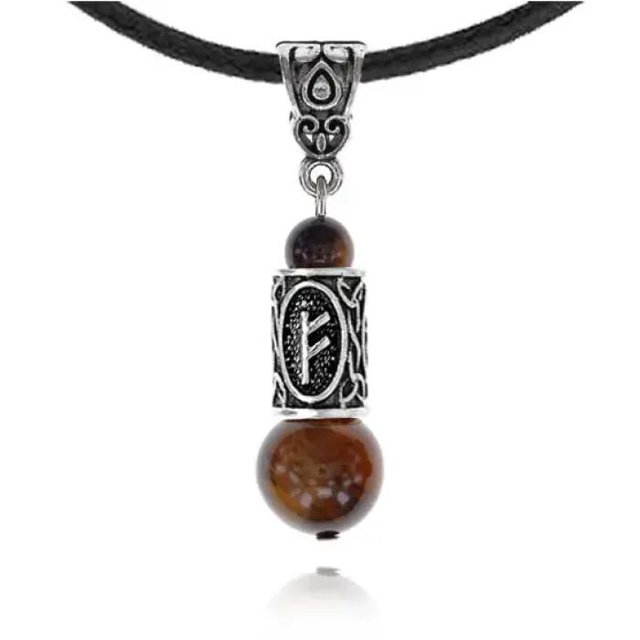 Кулон-амулет с руной Феху (Карьера, бизнес, богатство, любовь), тигровый глаз KULS016